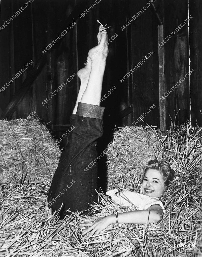 beautiful Martha Hyer laying n the hay pointing her feet skyward 8b20-18802