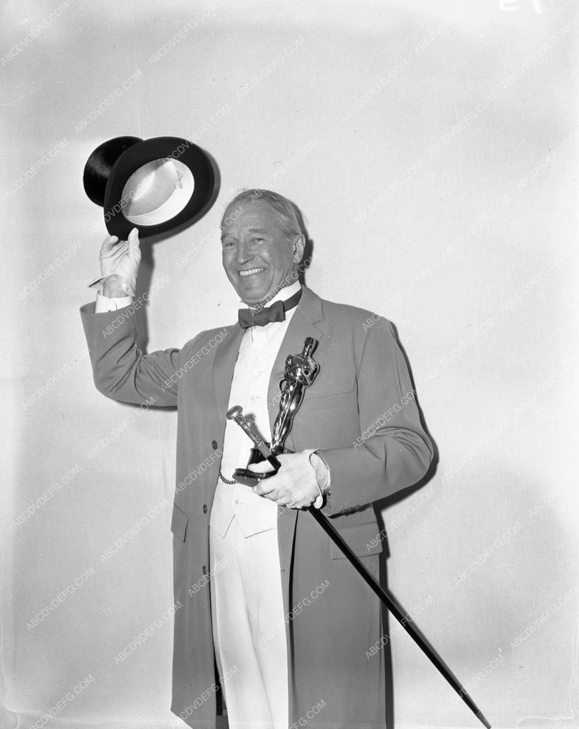 1958 Oscars Maurice Chevalier and statue Academy Awards aa1958-60
