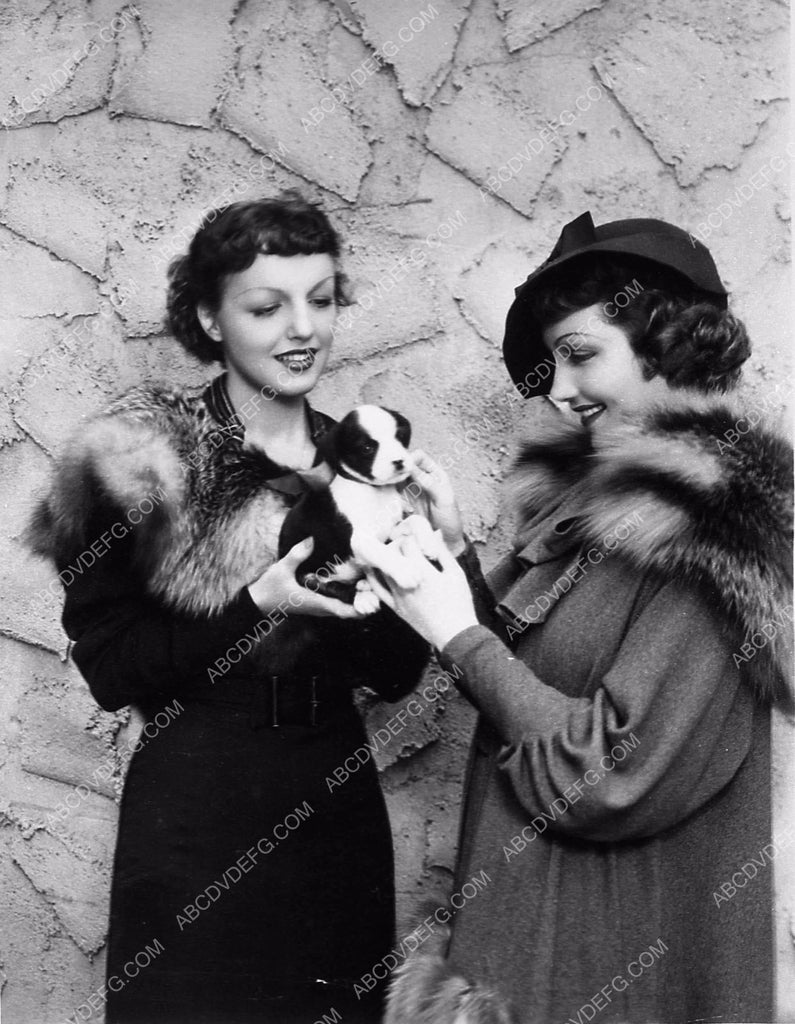 candid Claudette Colbert and friend look at some new puppy dogs 5765a-14
