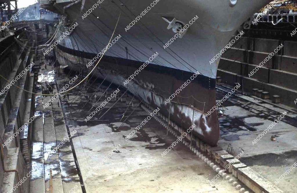 circa 1956 U.S. Naval shipyard Subic Bay Philippines aircraft carrier USS Shangri-La in dry dock 35m-16340