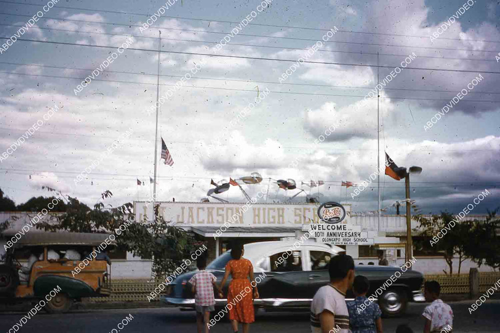 circa 1956 U.S. sailor tours historic Philippines Olongapo City J K Jackson High School 35m-16336