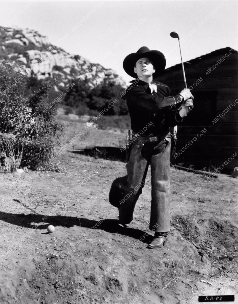 cowboy western film star Bob Baker playing golf behind the scenes 2126-15